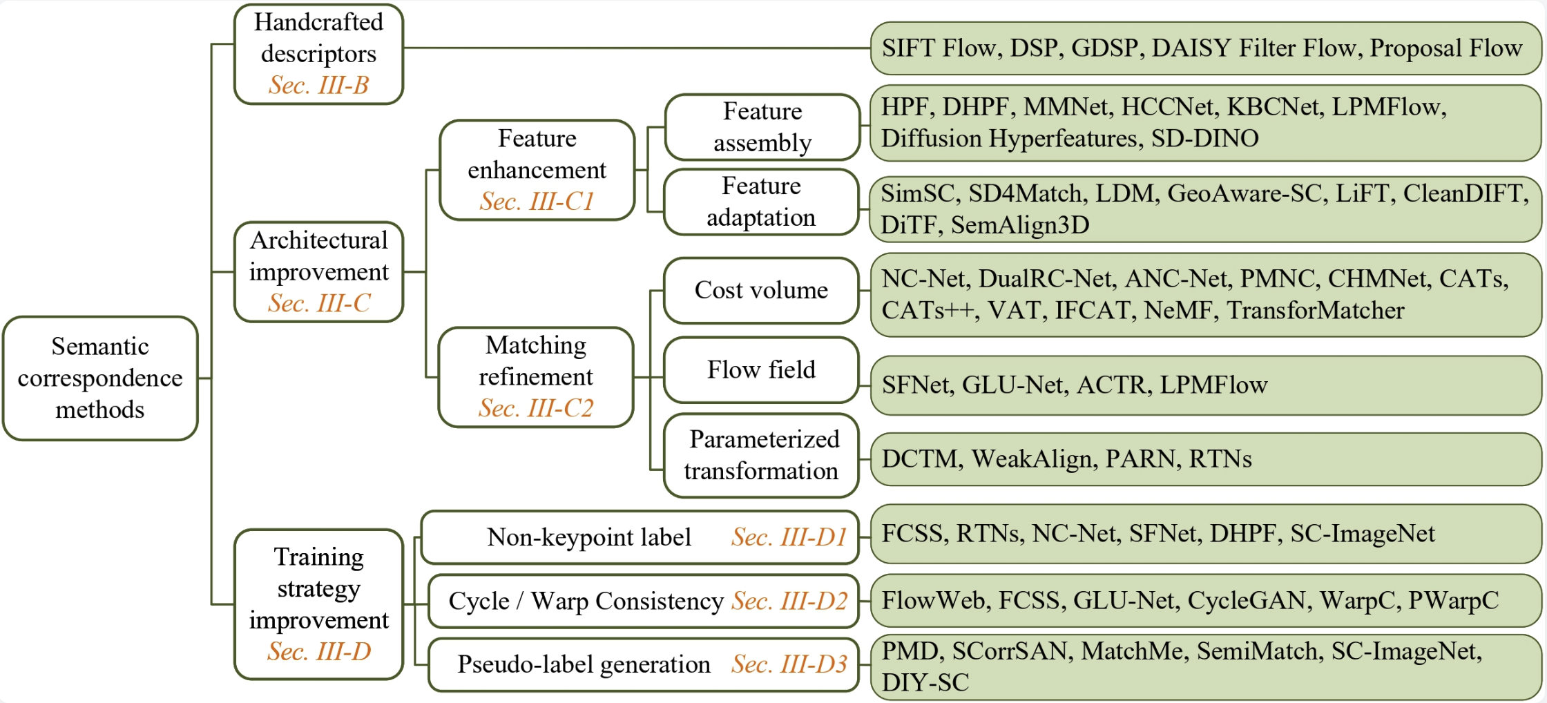 An extensive survey of semantic correspondence methods with a unified benchmark and a strong baseline achieving state-of-the-art performance.